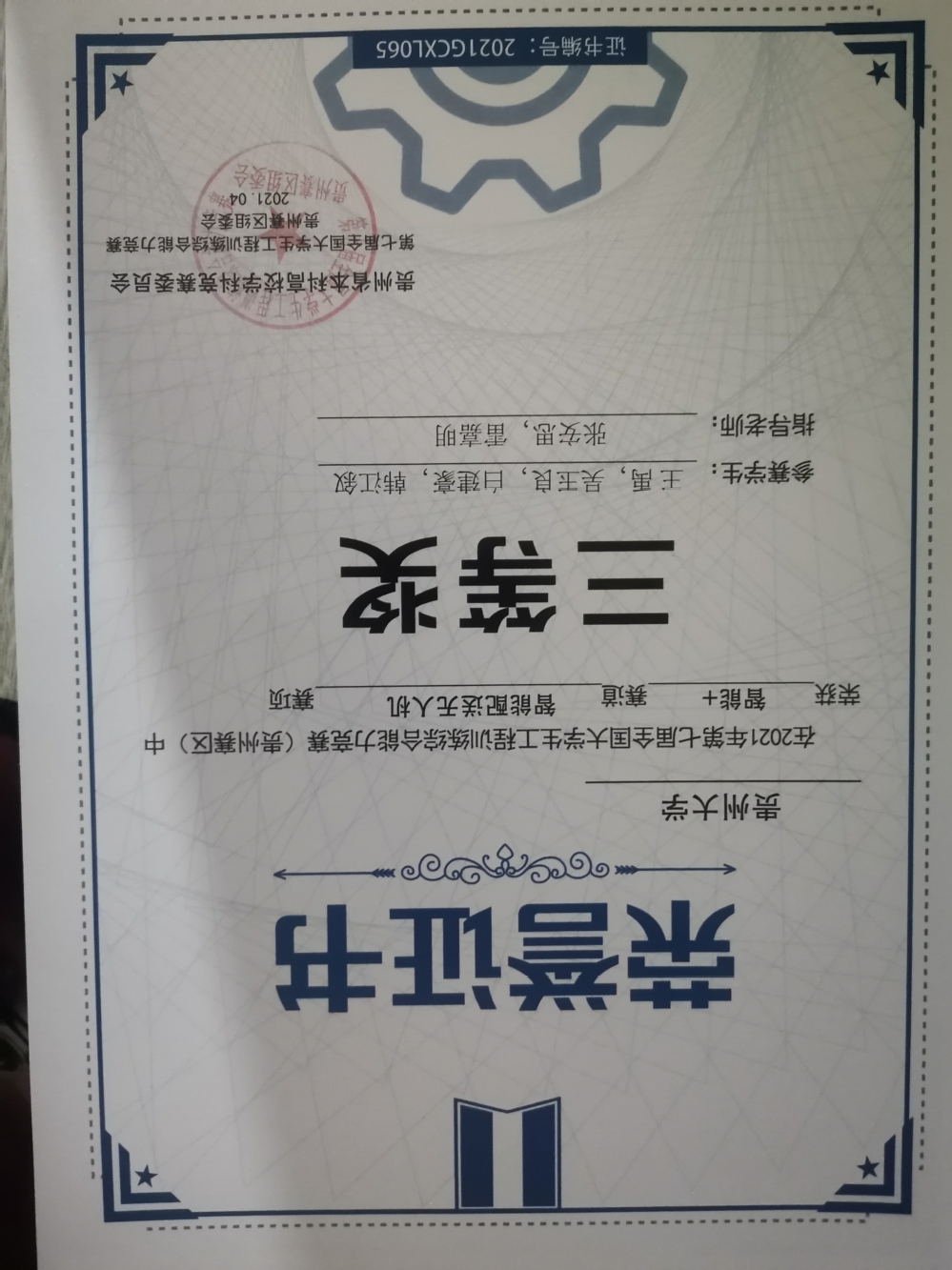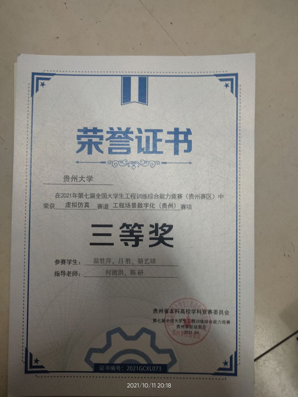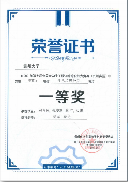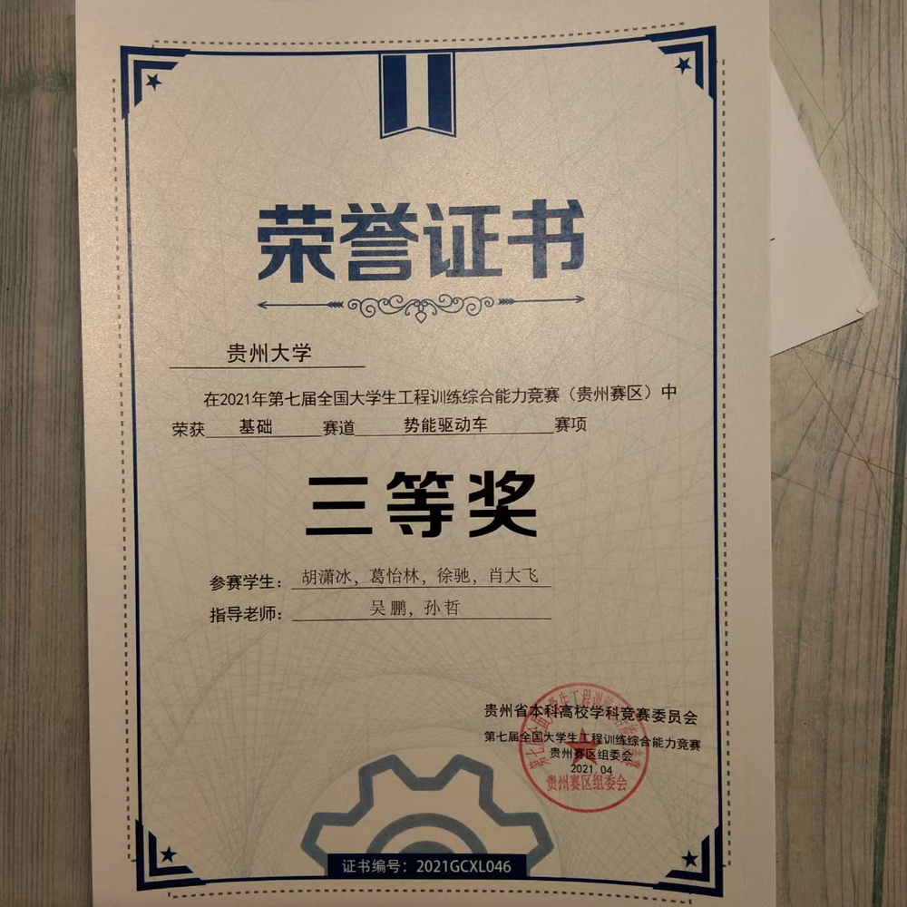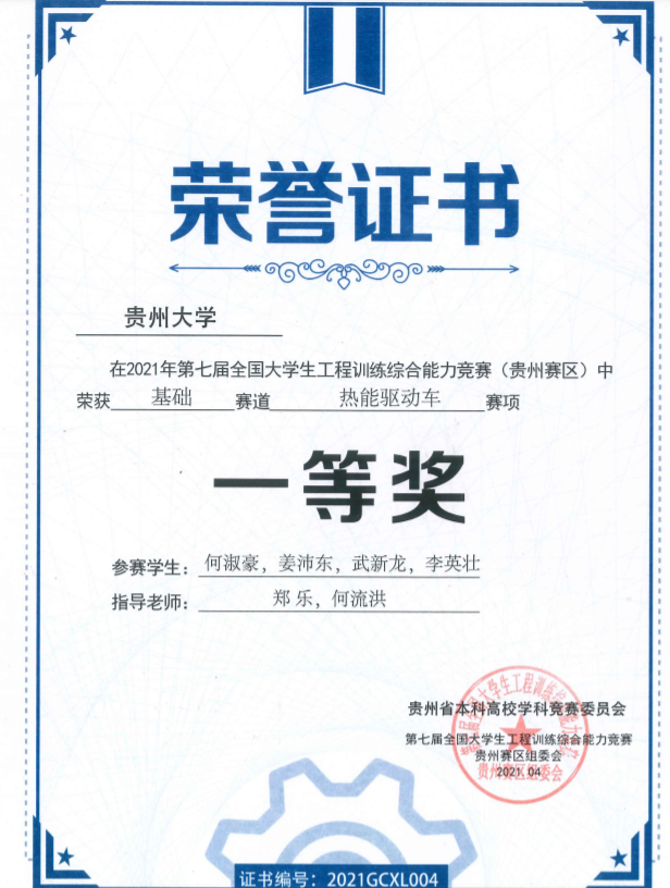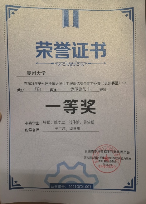 2021年工程训练大赛获奖证书(部分)