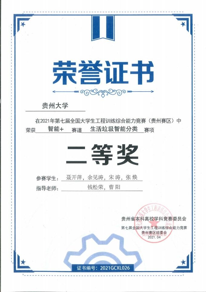 获奖证书